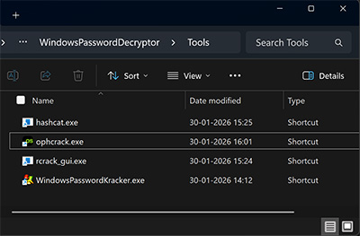- Launch offline recovery tools like Hashcat, Ophcrack, RainbowCrack, Windows Password Kracker etc